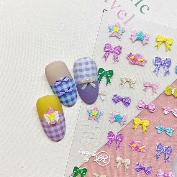 Bowknot Nail Stickers, Bowknot Nail Decals, Kawaii Nail Stickers, Cute Nail Decals, Nail Decal ArtSize: 10.3cmx 8cmStyle: 5D EmbossedNail Stickers: Diy Nails at home EasilyHow to use nail stickers:1. Apply nail polish and let dry, clean the nail and free from oil.2. Peel the sticker with tweezers, sticker on your nails and press firmly.3. Seal your nail with a top coat. Tips for using embossed nail stickers:After applying topcoat, please suck the topcoat on the embossed part with brush or cotton pad. Or only seal the edge of the sticker with topcoat.